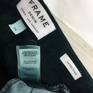 Cropped FRAME high-rise jeans, composed of soft, stretch corduroy. 5-pocket styling. Button closure and zip fly.