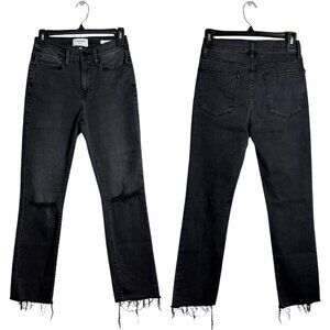 Frame Le High Straight Leg Denim Jeans Womens 26 Molony Black Distressed Raw Hem