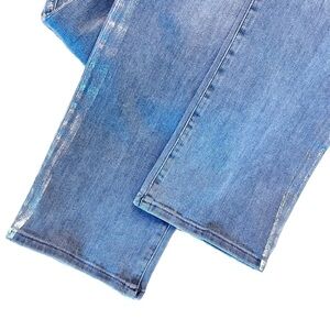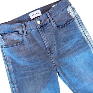 Frame Le High Straight Leg Foil Tuxedo Stripe Jeans Size 26 in Gray Field Foil