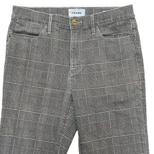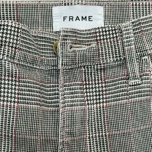 Frame Le High Straight Plaid Herringbone Pattern Pants Trousers Black White Red