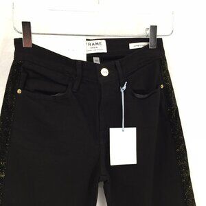 Frame Le High Straight black jean sparkle tuxedo stripe glitter velvet new 25