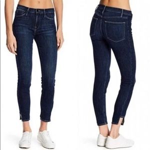 Frame Le High ankle cut out skinny harway jeans size 26. Very dark blue, boarding on blank. No flaws or signs of wear! Waist across 13.25”, inseam 29”, rise 9.5”.