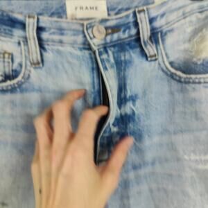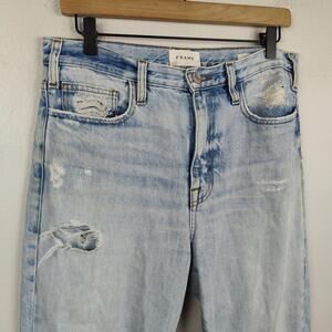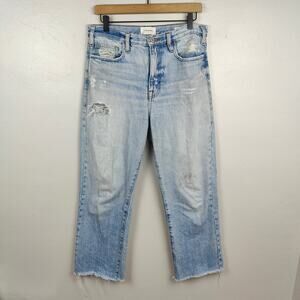 Frame Le Jane Crop Jeans Womens 28 Light Wash Baines Rips Straight Baggy