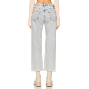 Our beloved Le Jane fit in a flattering, on-trend cropped length. This ultra-high-rise jean is fitted through the hips, slightly relaxed at the thigh, and straight through the legs. Crafted from rigid denim in a light indigo wash, with grinding details on the pocket scoops and hem for a lived-in look.