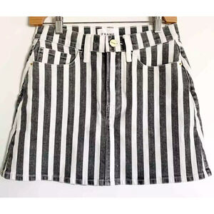 Frame Le Mini Beatnik Stripe Denim Skirt in Noir Multi Gray/White
