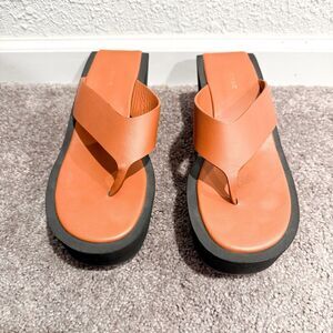 Frame Le Ocean Women’s 39.5 Brown Leather Platform Chunky Flip Flop Sandal