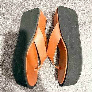 Chunky platform flip flop, chunky flip flop, wedge flip flop, designer, stealth wealth, quiet luxury, leather sandal, leather flip flop, chic, neutral, minimalist, Y2K inspired, capsule wardrobe, statement style, chunky flatform sandal
