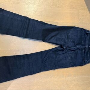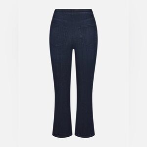 Chic flare stretch jeans in deep indigo. Stretches up to 5 sizes.