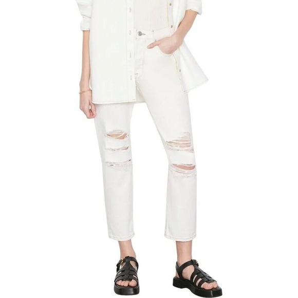 Frame Le Original Button Fly Off White Rips Distressed Jeans Size 24