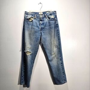 Frame Le Original. High-Rise Straight Jeans Grungy Distressed Button Fly 31W