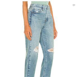 85% cotton, 15% re-used cotton. Made in Paraguay. Machine wash. Button fly. 5-pocket design. Whiskering and faded detail. Intentionally destroyed areas with frayed, raw-cut hem.Made using eco-friendly materials and less water than traditional production methods. 16" at the knee narrows to 14" at the leg opening.