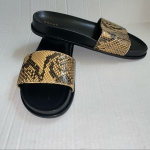 Frame Le Osborne Leather Slide Sandals, New without box, Size 9, Color-Python Multi.
