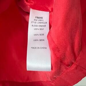 Frame Le Raglan Split-Neck Silk Blouse in Blood Orange