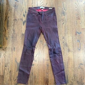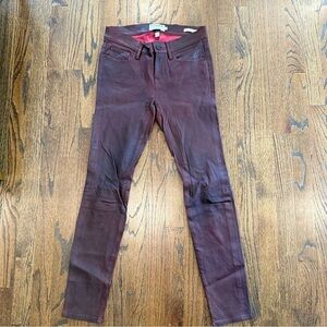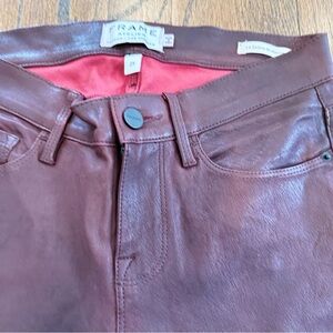 Frame Le Skinny 100% Lamb Leather Pants Print in Burgundy Size 27 1610