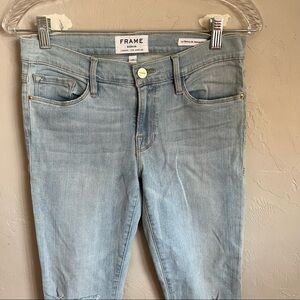 Frame Le Skinny De Jeanne Crop Distressed Honeywood Raw Hem Denim Jeans