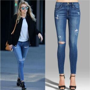 Frame Le Skinny De Jeanne Distressed Skinny Jean in Jewell Size 25
