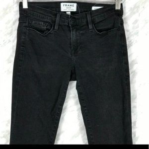Frame Le Skinny De Jeanne Jeans in Black - Size 26 - Raw Hem, Mid-Rise, Faded