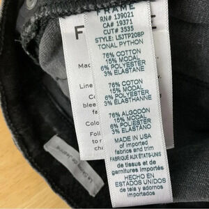Frame Le Skinny De Jeanne Snakeskin Print Jeans. Womens Size 25. Pockets in the front and the back. Tonal Python Print. 76% Cotton, 15% Modal, 6% Polyester, 3% Elastane. No modeling or trades. F48