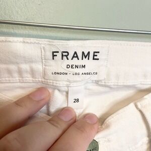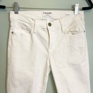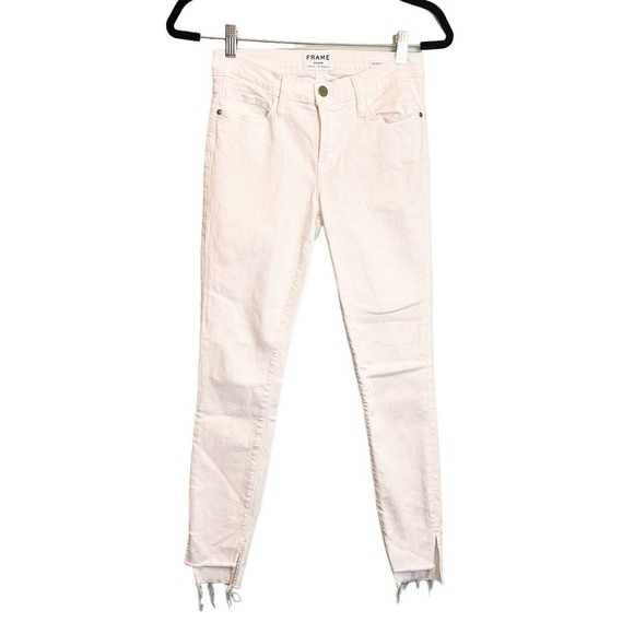 Frame Le Skinny De Jeanne White Denim Raw Hem Mid Rise Skinny Jeans Size 28