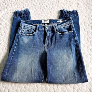******Frame Le Skinny de Jeanne fringe hem jeans. size 27. ripped distressed knees******