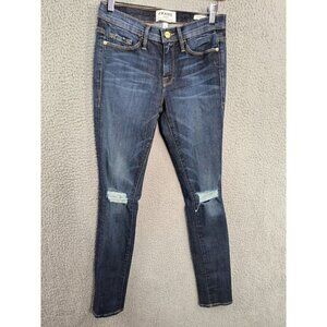 Frame Le Skinny de Jeanne Dark Wash Mid Rise Ankle Distressed Skinny Jeans Sz 27