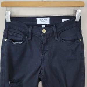 Frame | Le Skinny de Jeanne Distressed Black Jeans Size 24