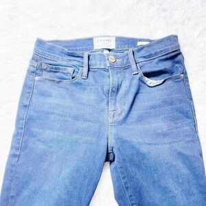 Frame Le Skinny de Jeanne Longstreet Dark Denim Fringe Hem SZ26