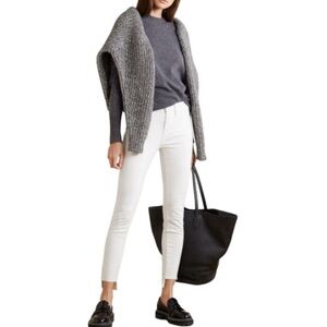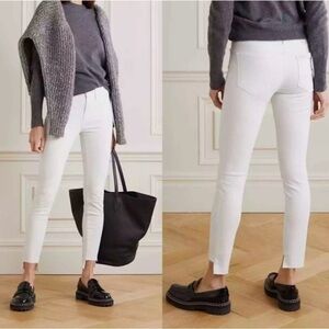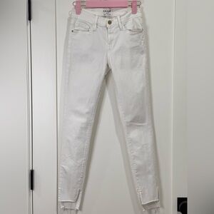 Frame Le Skinny de Jeanne Skinny Jeans Raw Stagger Hem Jeans Mid Rise White 26