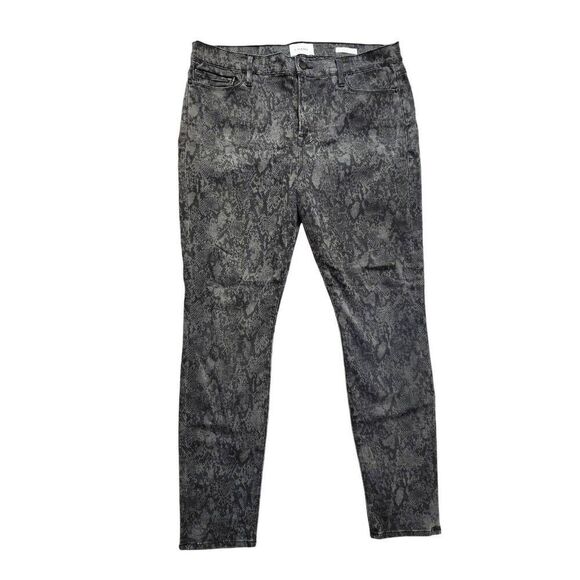 Frame 'Le Skinny de jeanne' womens jeans 34x29 black Tonal Python Stretch blend. Good pre-owned condition no stains no holes measurements provided in pictures are approximate please check measurements for proper fit
