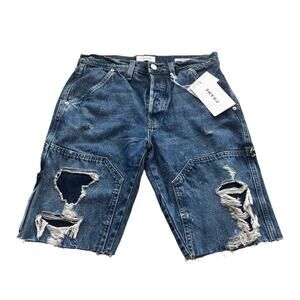 Frame Le Slouch Bermuda Button Fly Utility Jeans Shorts In Waterfall Size 27