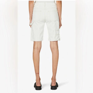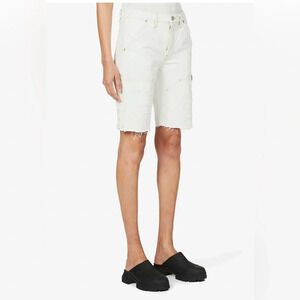 NWT Frame Le Slouch Bermuda Distressed-Trim High-Rise Denim Shorts