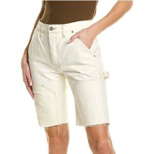 Frame Le Slouch Bermuda Shorts Denim Off White Distressed Raw Hem Sz 25 NEW