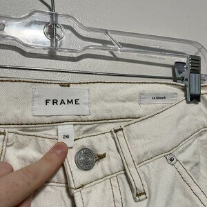 Frame Le Slouch Multiple-Pocket Straight-Leg Trouser Utility Jeans in Cream 26