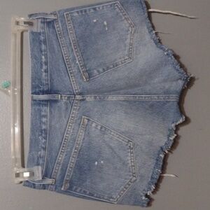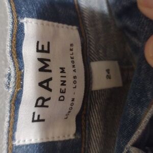 Frame Le Stevie Distressed Denim Cutoff Shorts with Peeking Pockets Blue 24