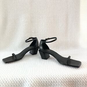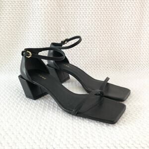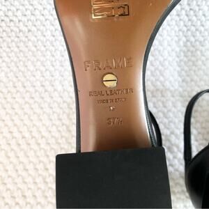Frame Le Summit Black Leather Low Heel Ankle Strap Simple Sandal 37.5 NWOB