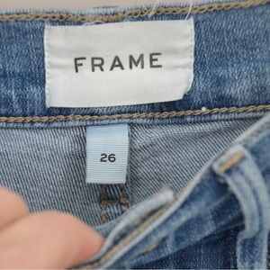 Frame Le Sylvie High Waist Raw Hem Crop Jeans in Kirah Wash Blue. Women's 26. Preowned condition. Please refer to photos for any signs of wear.