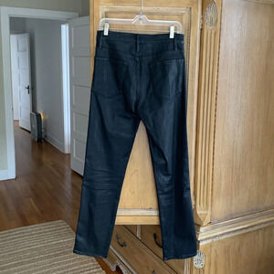 A high rise Jean with a slender leg that hits at the ankle. Coated in lux leather-like finish. No evidence of wear. Perfect condition. My home has no smoking or pets.