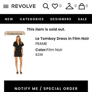 Frame Denim Le Tomboy Dress in Black Women's Size Small