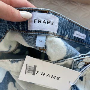 Frame Le Ultra Baggy Denim Shorts Sz 26 Bleach Spots Raw Hem High Rise