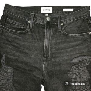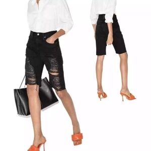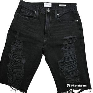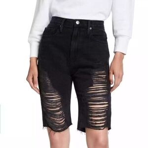 Frame Le Vintage Bermuda Distressed Black Denim Bermuda Jeans Shorts in 27