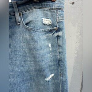 Complete your basic stack with these ultra-on-trend cropped jeans from Frame. Slightly faded, they are adorned with small rips at the front as well as frayed ankles. They sport five classic pockets and a zipper with button at the front. Perfect teamed with a long-sleeved top and a pair of sneakers.