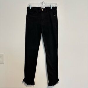 Frame Le high skinny shredded Raw hem black high waisted jeans