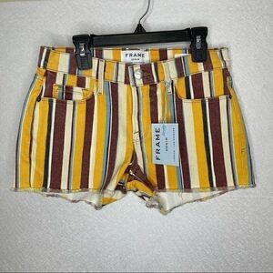 Frame Le Cutoff Denim Shorts Painterly Raw Hem 24