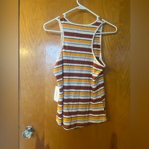 Elevate your casual wardrobe with this stylish striped sleeveless top. Featuring a blend of vibrant colors, it's perfect for any occasion.