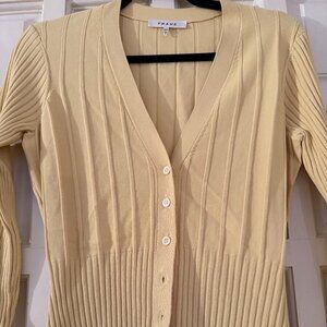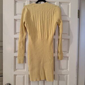 Lightly worn! Definitely more of a muted yellow in person. Have worn as a dress, but more often styled like it is in cover photo.