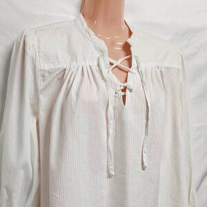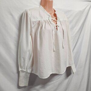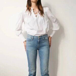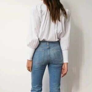 Frame Mandarin V Neck Relaxed Fit Top Blouse Women Size S Smocked Cuffs