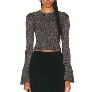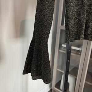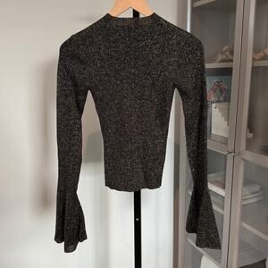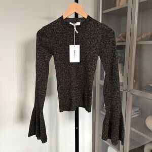 Frame Metallic Godet Cuff Top NEW Long Flare Sleeves Black Gold Shimmer Size S