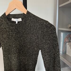 FRAME BLACK GOLD METALLIC LUREX GODET CUFF LONG SLEEVE TOP
