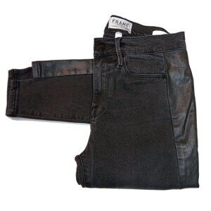 Pre-owned Frame London denim jeans with stylish faux leather side panels in very good condition with possible light wear from being washed or worn.