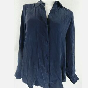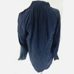 Item: Women's Navy Matte Silk Slit Sleeve Button Front Blouse